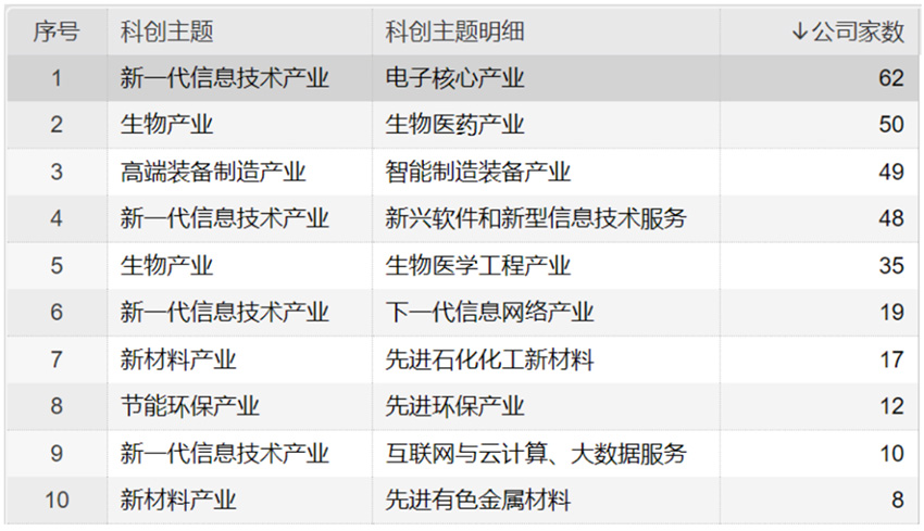 表:科創(chuàng)主題統(tǒng)計(jì)top 10